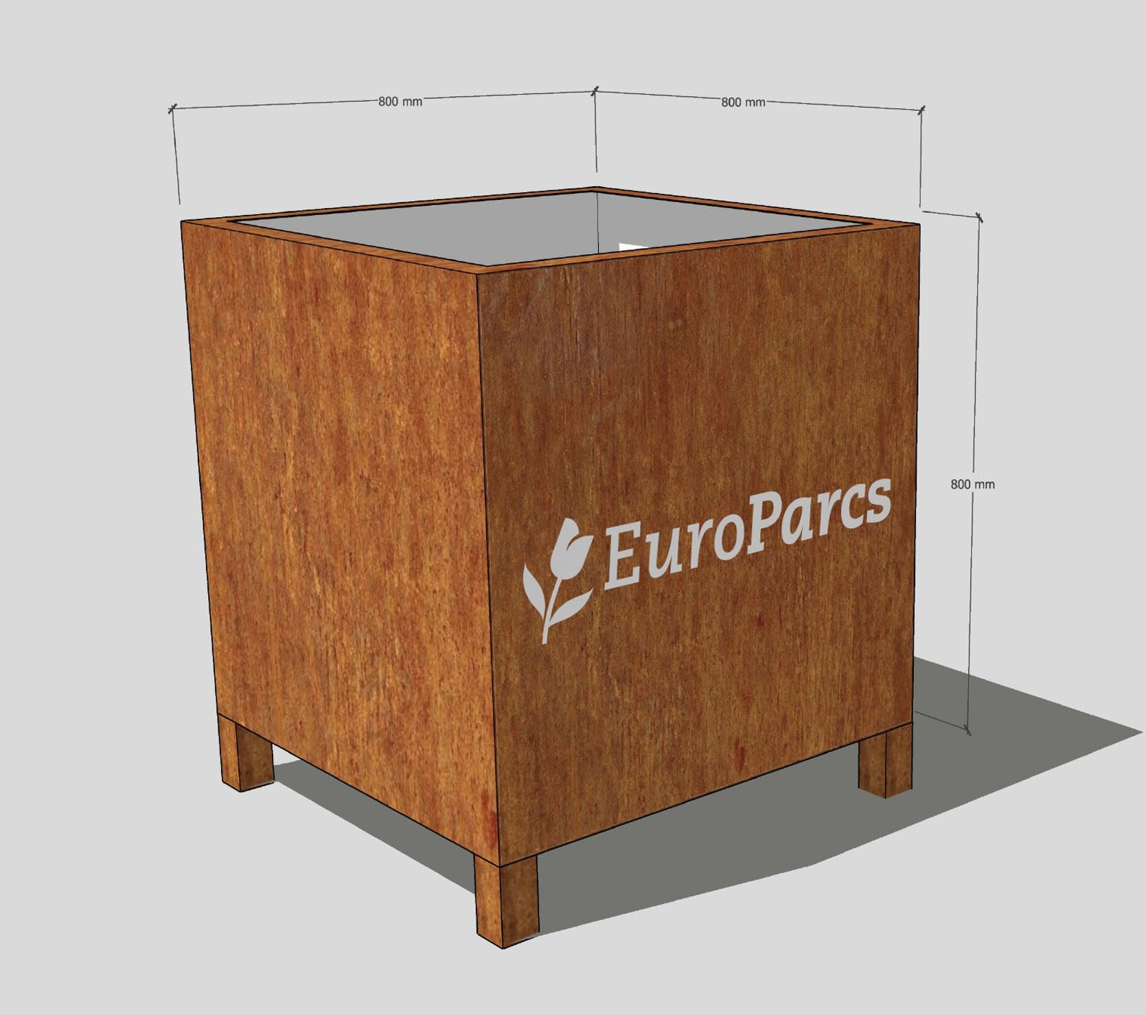 Cortenstalen bloembak EuroParcs voor professioneel gebruik in vakantiepark- en hotelomgevingen. Deze robuuste plantenbak van 800x800x800mm combineert duurzaamheid met esthetiek. Het cortenstaal ontwikkelt een karakteristieke roestpatina die bescherming biedt tegen verdere corrosie. Voorzien van uitgelaserd EuroParcs-logo, ingebouwde isolatie en afwateringsgaten voor optimale plantengezondheid. Ideaal voor entrees, terrassen en parkzones. Onderhoudsarm en weersbestendig voor jarenlang gebruik in alle seizoenen.